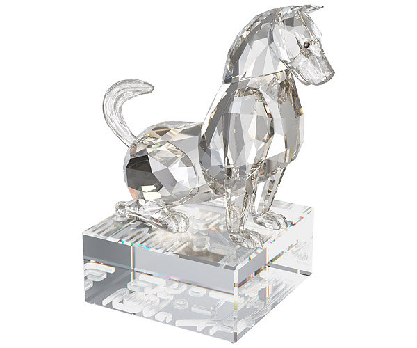 Размер: 8,8 x 7,7 x 5 см. В Китае собака считается защитницей дома. Она отстраняет беды и отгоняет злых духов. Фигурка из огранённых и неограненных кристаллов цвета Silver Shade с глазами цвета Smoked Topaz изображает собаку в характерной настороженной позе. На подставке из гранёного прозрачного кристалла с матовой отделкой выгравировано название знака на английском языке и – древними иероглифами – на китайском. Это декоративный объект, без которого коллекция высокого искусства или декор интерьера будут неполными.