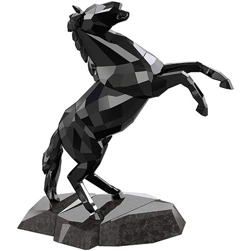 Размер: 21,5 x 18 x 9,4 см. Этот эксклюзивный шедевр символизирует силу и мощь жеребца. Статуэтка из черных кристаллов изображает жеребца в движении. Она демонстрирует впечатляющие навыки мастеров Swarovski. Статуэтка размещена на чёрной гранитной подставке с защитным войлочным покрытием на дне. Это уникальный броский декоративный объект для дома или офиса.
