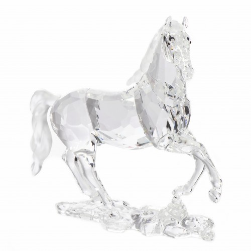 Размер: 14,6 x 14,4 x 6 см. Этот впечатляющий жеребец обязательно оставит яркое впечатление. Эта крупная фигурка сделана из прозрачных кристаллов с глазами цвета Topaz. Грива, хвост и подставка сделаны из неограненных матовых кристаллов. Декоративный объект.