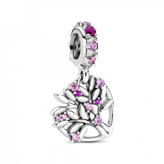 Серебро 925. Вес: 2,13 гр. Шарм-подвеска Moments "Семейное древо" красиво напоминает о ваших близких. Ажурная подвеска в виде сердечка, внутри стоит дерево, листья которого украшены камнями разных оттенков розового. Носите это украшение как на браслете, так и на цепочке.
