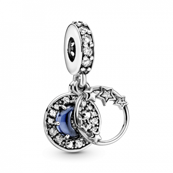 Серебро 925. Вес: 3,32 гр. Шарм-подвеска Moments "Ночное небо" из серебра 925 пробы с камнями кубического циркония и синими кристаллами. Двойная подвеска создает объемный эффект — Синий полумесяц проступает сквозь зведное сияние.