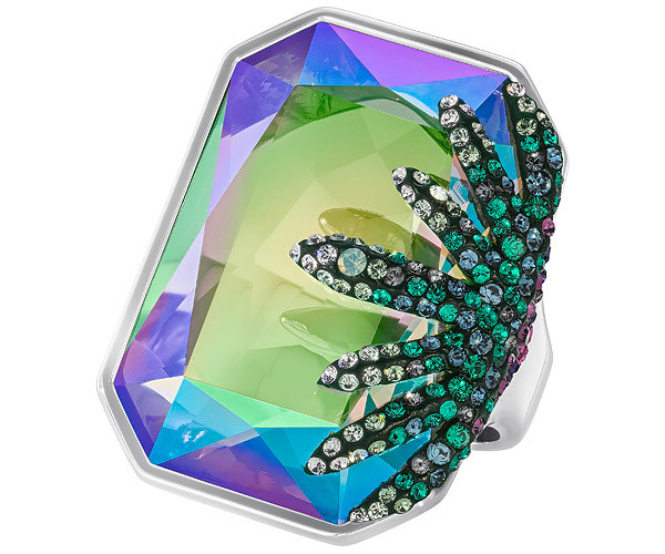 Размер: 58. Это броское кольцо в модном тропическом стиле декорировано миниатюрными разноцветными камнями. Зелёные кристаллы и кристаллы цвета фуксии закреплены в технике Pointiage®. На создание кольца Gisele с палладиевым покрытием наших мастеров вдохновили пальмы на калифорнийских бульварах. Это потрясающее украшение подходит и для роскошных вечеринок, и для изысканных дневных образов.