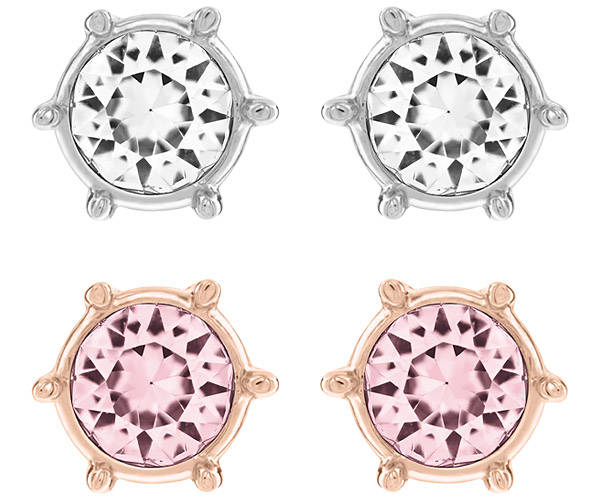 Длина серёг: 0,5 см. Этот комплект состоит из двух пар аккуратных круглых серёг-пусет. Одна пара блестит прозрачными кристаллами и родиевым покрытием на металлической основе, другая – нежно-розовыми кристаллами и покрытием из розового золота. Эти изысканные серьги легко впишутся в любой непринуждённый или офисный образ и станут прекрасным подарком.