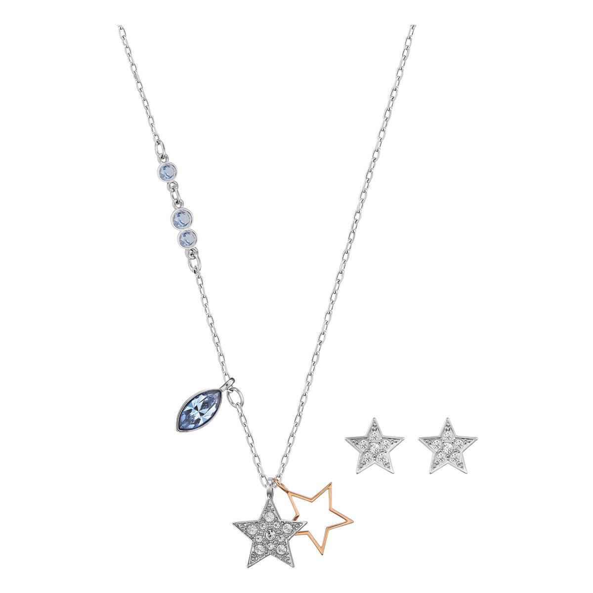 Длина ожерелья: 38 см. Длина серёг: 0,5 см. Этот комплект украшений с разными покрытиями выглядит романтично и элегантно. Он состоит из подвески на цепочке и пары серёжек. Комплект украшений со звёздами и сверкающими кристаллами внесёт в любой наряд оригинальную гламурную ноту.