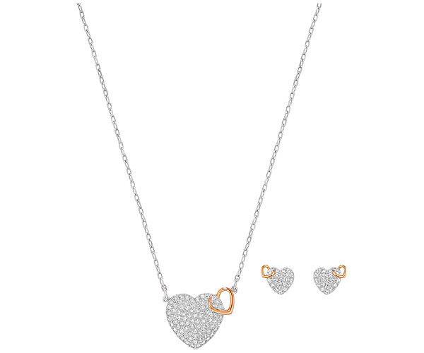 Длина ожерелья: 38 см. Длина серёг: 0,5 см. Это идеальный подарок на День святого Валентина. Этот комплект состоит из ожерелья и пары серёг. Металлические украшения с родиевым покрытием, декорированные миниатюрными сцепленными сердцами с покрытием из розового золота, символизируют вечную любовь. Благодаря прозрачному кристальному паве они сияют ещё ярче.