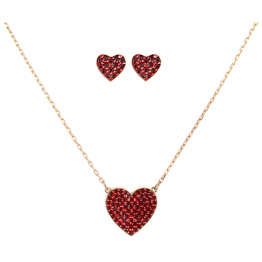 Длина ожерелья: 38 см. Длина серёг: 0,50 см. Романтичная новинка популярной коллекции Swarovski Cupid. Этот комплект состоит из ожерелья и серёгпары серёг с покрытием из розового золота. Каждый элемент декорирован аккуратным сердцем с ярко-красным кристальным паве. Это идеальный подарок для любимой на День святого Валентина.