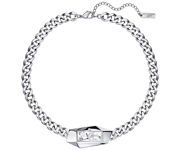 Длина: 40 см. Созданная Жан-Полем Готье, словно отражает тему совершенства несовершенства. Драматичные прозрачные кристаллы огранки Kaputt, созданной дизайнером, сверкают в скульптурных гнёздах с родиевым покрытием. Они закреплены на массивной цепочке, покрытой тем же металлом. Это броское актуальное украшение внесёт в вашу коллекцию искру подиумного шика. Ожерелье длиной 40 см украшено логотипом коллекции Жан-Поля Готье для Atelier Swarovski.