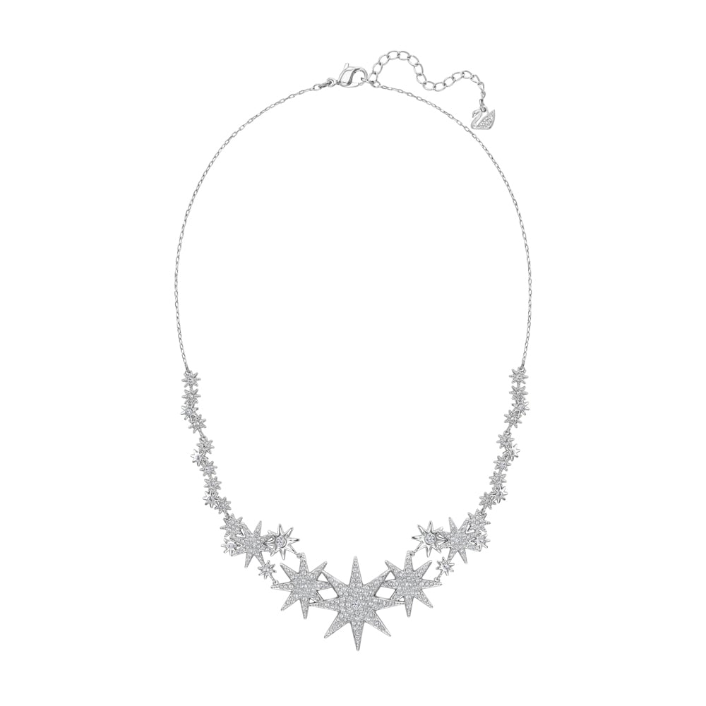 Длина ожерелья – 40 см. Звёздная галактика. Крупное ожерелье Swarovski Fizzy с изысканными звёздами идеально подходит для праздничного сезона.Прозрачное кристальное паве восхитительно сияет на фоне металла с родиевым покрытием.