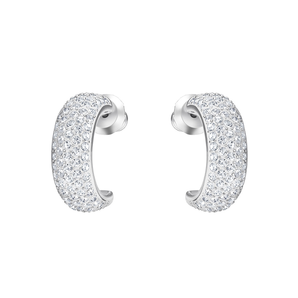 Длина: 1,5 см. Аккуратные классические серьги-обручи с родиевым покрытием мягко сияют прозрачным кристальным паве. Такое украшение — элегантное и женственное — прекрасно смотрится с любым костюмом и в любой обстановке, от офиса до вечернего коктейля.