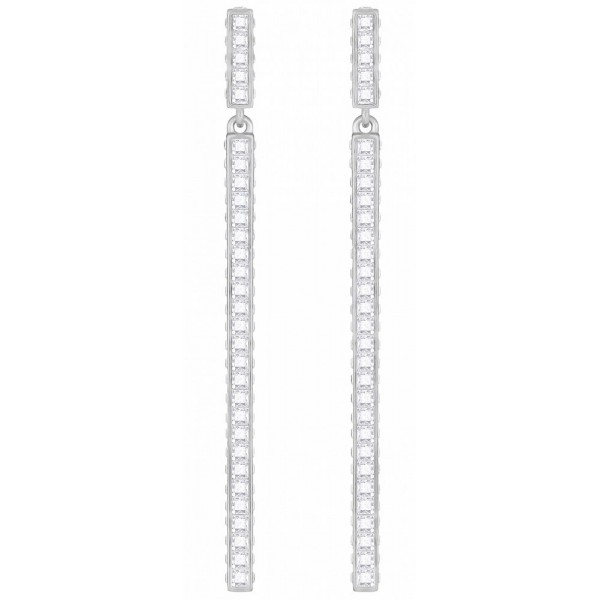 Длина: 5,5 см. Эта пара длинных серёг со сверкающим прозрачным кристальным паве выглядит современно и элегантно. Лёгкие практичные серьги с родиевым покрытием станут одним из ваших любимых украшений. Они восхитительно смотрятся и днём, и вечером. Это идеальное приобретение для ценителей моды.