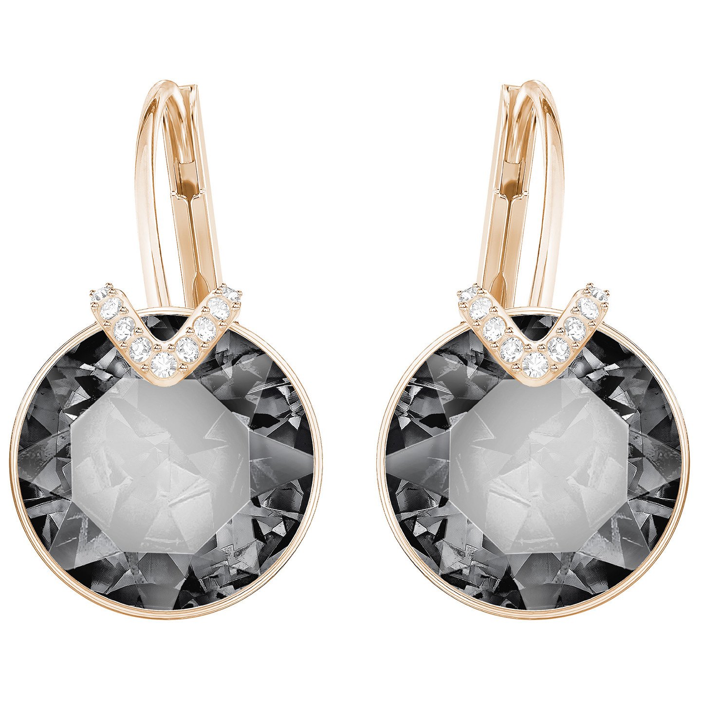 Размер: 2,5 см. Эти изящные серьги с женственным покрытием из розового золота помогут создать лаконичный роскошный образ. Прекрасные круглые кристаллы серого оттенка с акцентами из прозрачного кристального паве удачно дополнят любой образ. Они стильно смотрятся и днём, и вечером.
