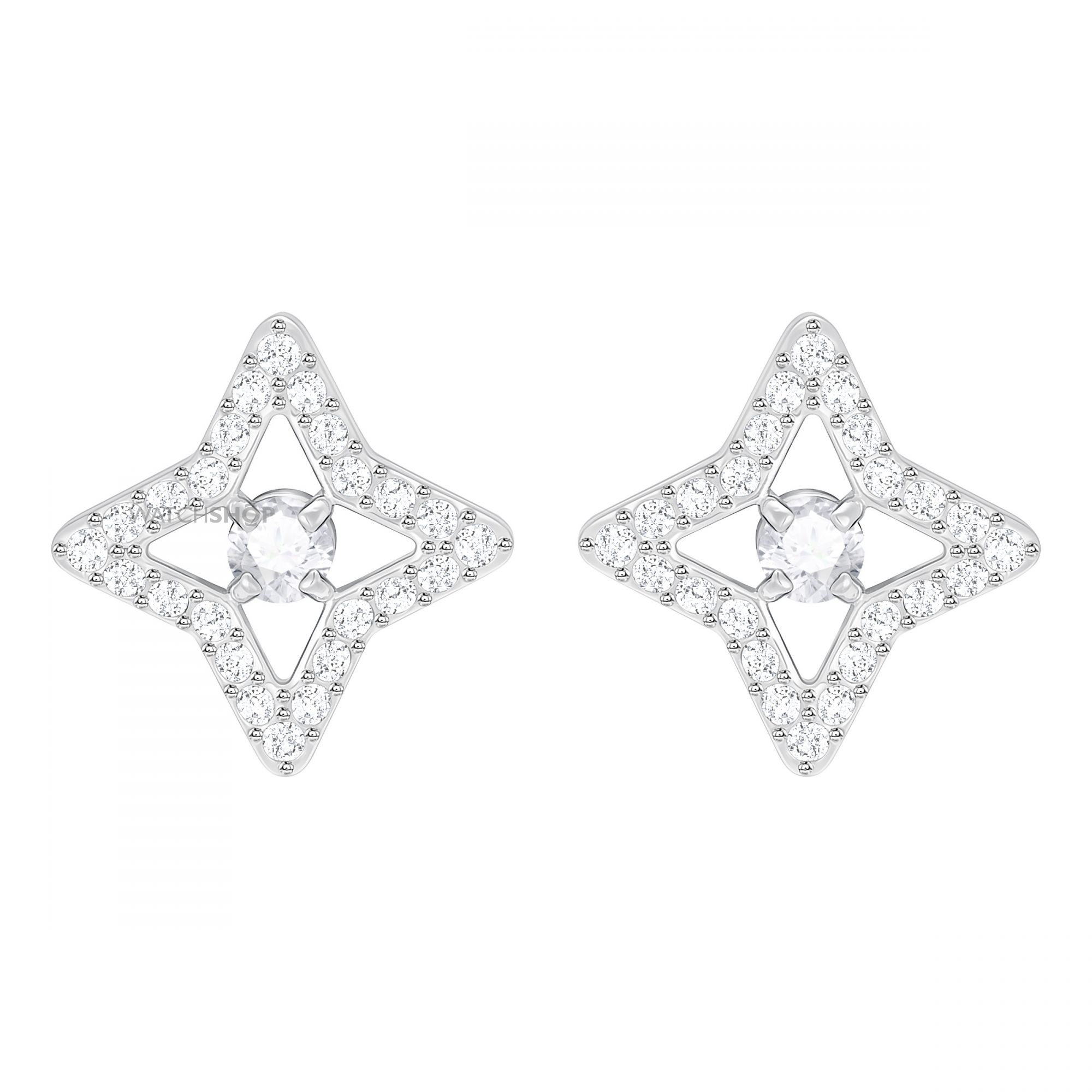 Размер: 1,5 см. Вы будете носить эти потрясающие серьги-гвоздики каждый день. Воплощение инновационной концепции «танцующий кристалл». В серьгах с родиевым покрытием сверкающие камни помещены в кейс в форме звезды с паве. Классический и необычайно изящный дизайн.