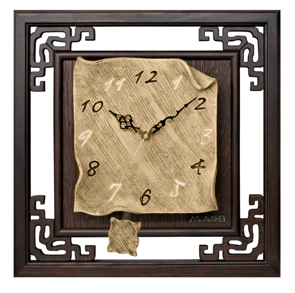 Размер корпуса: 44 x 44 x 9см. Материал: сосна, керамика. Часы символизируют красоту природы, воспитывают умение обращаться к природе как неисчерпаемой сокровищнице прекрасного. В этой модели секундная стрелка – муляж листочка японской сакуры.
