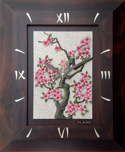 Размер: 40 х 50 см. Корпус выполнен из сосны и полимерной керамики. Часы символизируют пробуждение жизни, творческое и духовное обновление.
