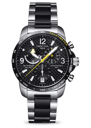 Диаметр корпуса: 42 мм. Швейцарский кварцевый механизм ETA, калибр G10.961, на 4 камнях. Точность хода с погрешностью не более -10/+15 секунд в месяц. Элемент питания №394 со сроком службы 38 месяцев. Хронограф с функцией ADD и SPLIT, центральная секундная стрелка, 60-минутный и 12-часовой индикаторы на«2 часах». Индикатор времени второго часового пояса GMT в 24-часовом формате на отметке «10 часов». Центральные часовая и минутная стрелки, маленькие секунды на «6 часах». Индикация даты в апертуре на отметке «6 часов». Функция EOL - индикация низкого уровня заряда батареи при помощи движения секундной стрелки. Безель с гравированной разметкой тахиметрической шкалы. Циферблат карбона, аппликация цифр и элементов оформления. Стрелки и индексы с покрытием Super-LumiNova® Защелкивающаяся задняя крышка с гравированным логотипом бренда. Браслет с литыми звеньями из нерж. стали, черное PVD-покрытие на центральных звеньях, раскладывающаяся браслетная застежка с защитным фиксатором.