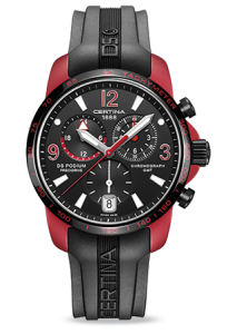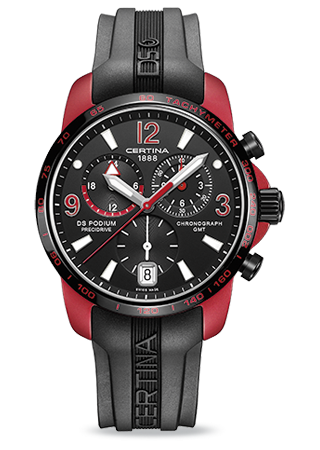 Диаметр корпуса: 42 мм. Швейцарский кварцевый механизм ETA, калибр G10.962 BF Precidrive™, на 4 камнях. Повышенная точность хода с погрешностью не более -/+10 секунд в год. Хронограф с функцией ADD и SPLIT, центральная секундная стрелка, 60-минутный и 12-часовой индикаторы на«2 часах» Индикатор времени второго часового пояса GMT в 24-часовом формате на отметке «10 часов». Центральные часовая и минутная стрелки, маленькие секунды на «6 часах». Индикация даты в апертуре на отметке «6 часов». Корпус из сверхлегкого алюминия с анодирование различных цветов. Алюминий в 3 раза легче нерж. стали и обладает высокой прочностью и гипоаллергенными свойствами. Это делает его подходящим для представленного здесь инновационного корпуса часов. Специальное покрытие делает этот корпус в 2 раза прочнее нерж. стали. Безель с контрастным покрытием и разметкой тахиметрической шкалы. Циферблат с матовой поверхностью, аппликация цифр и элементов оформления. Стрелки и индексы с покрытием Super-LumiNova® Защелкивающаяся задняя крышка с гравированным логотипом бренда. Каучуковый ремешок с тиснением, стандартная застежка с шипом.