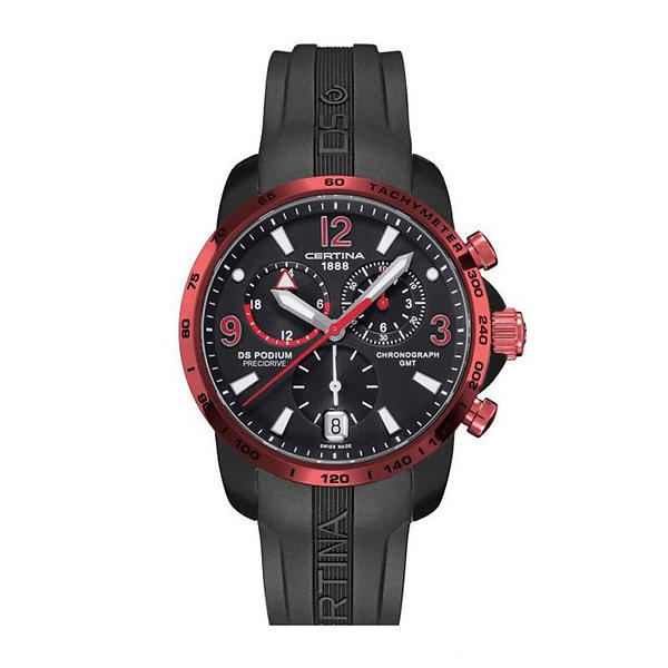 Диаметр корпуса: 42 мм. Швейцарский кварцевый механизм ETA, калибр G10.962 BF Precidrive™, на 4 камнях. Повышенная точность хода с погрешностью не более -/+10 секунд в год. Хронограф с функцией ADD и SPLIT, центральная секундная стрелка, 60-минутный и 12-часовой индикаторы на«2 часах» Индикатор времени второго часового пояса GMT в 24-часовом формате на отметке «10 часов». Центральные часовая и минутная стрелки, маленькие секунды на «6 часах». Индикация даты в апертуре на отметке «6 часов». Корпус из сверхлегкого алюминия с анодирование различных цветов. Алюминий в 3 раза легче нерж. стали и обладает высокой прочностью и гипоаллергенными свойствами. Это делает его подходящим для представленного здесь инновационного корпуса часов. Специальное покрытие делает этот корпус в 2 раза прочнее нерж. стали. Безель с контрастным покрытием и разметкой тахиметрической шкалы. Циферблат с матовой поверхностью, аппликация цифр и элементов оформления. Стрелки и индексы с покрытием Super-LumiNova® Защелкивающаяся задняя крышка с гравированным логотипом бренда. Каучуковый ремешок с тиснением, стандартная застежка с шипом.