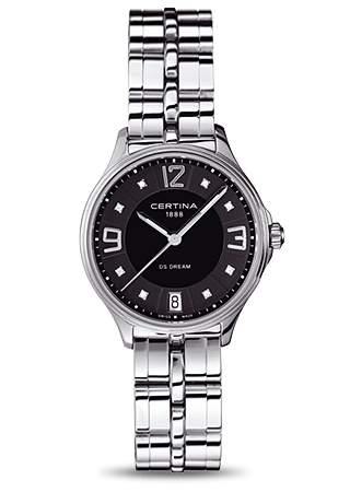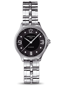 Дтиаметр корпуса: 30,5 мм. Кварцевые часы с функцией индикации заряда (EOL). Индикация числа. Циферблат украшен 8 бриллиантами. Стрелки с люминесцентным покрытием.