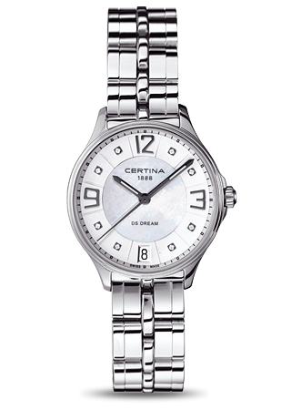 Дтиаметр корпуса: 30,5 мм. Кварцевые часы с функцией индикации заряда (EOL). Индикация числа. Циферблат украшен 8 бриллиантами. Стрелки с люминесцентным покрытием.
