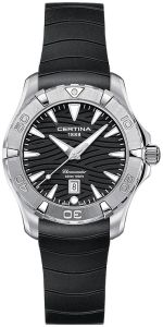 Диаметр корпуса: 34 мм. Базель 2017. Хронометр C.O.S.C (Controle Officiel Suisse des Chronometres (Официальный швейцарский институт хронометрии). Антибликовое покрытие стекла, вращающийся безель, завинчивающиеся задняя крышка и заводная головка, ремень с дайверским удлинением. Индикация даты.