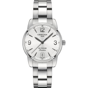Диаметр корпуса: 33 мм. Швейцарский кварцевый механизм ETA, калибр F06.411 PreciDrive™, на 3 камнях. Повышенная точность хода с погрешностью не более -/+10 секунд в год. Центральные часовая, минутная и секундная стрелки. Индикация даты в апертуре на отметке «6 часах». Функция EOL - индикация низкого уровня заряда батареи при помощи движения секундной стрелки. Циферблат с шлифовкой, рисованные арабские цифры или выполненные методом аппликации. Защелкивающаяся задняя крышка с гравированным логотипом бренда. Браслет с литыми звеньями из нерж. стали, браслетная застежка тройного сложения типа «бабочка», раскладывающаяся при нажатии на кнопки.