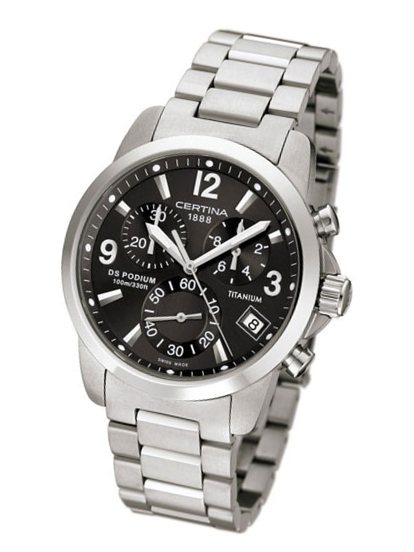 Диаметр корпуса: 40 мм. Кварцевый хронограф. Секундная стрелка смещена на маленький циферблат (в 6 часов).