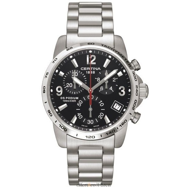 Диаметр корпуса: 40 мм. Кварцевый хронограф. Секундная стрелка смещена на маленький циферблат (в 6 часов).