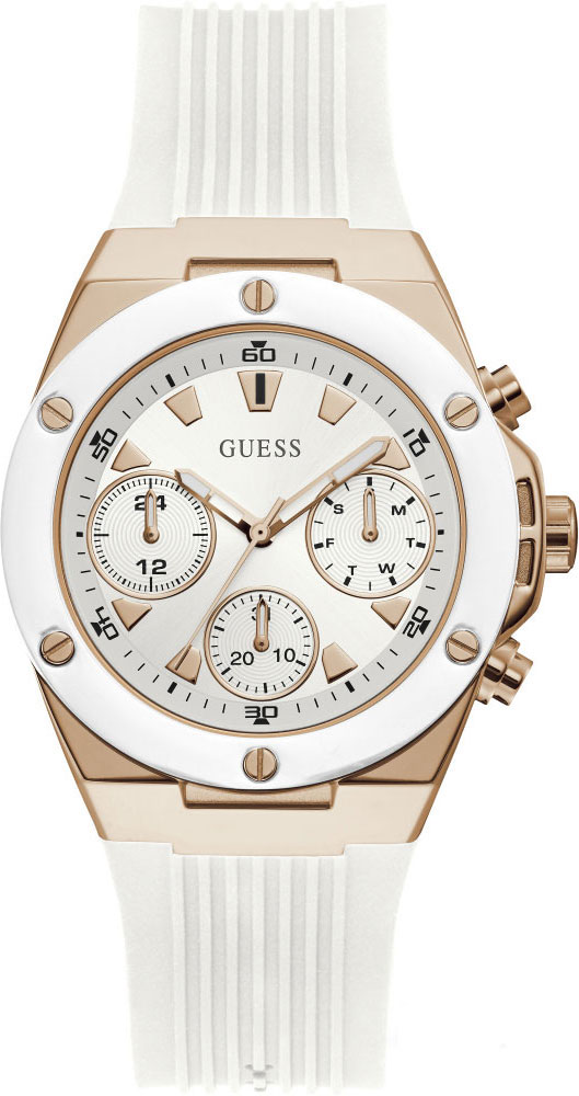 Диаметр корпуса: 39 мм. Циферблат выполнен по технологии Sunray (солнечные лучи). 12-ти и 24-х часовой формат времени. Время в 24-х часовом формате, дата и день недели вынесены на отдельные циферблаты. Пластиковый безель. Силиконовый ремешок с классической застежкой.