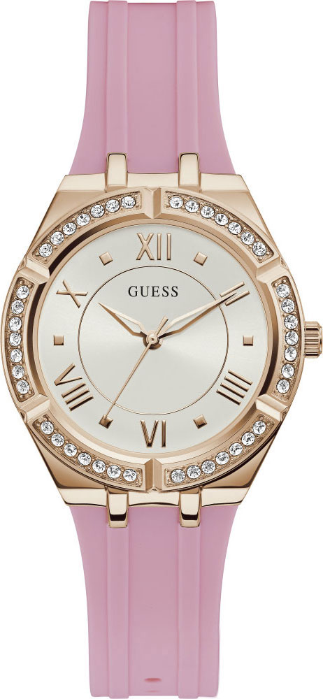 Диаметр корпуса: 36 мм. Циферблат выполнен по технологии Sunray (солнечные лучи). Безель украшен кристаллами.
