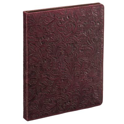 Размер: 20x25 см. Чехол для iPad с отверстием для видеокамеры на обратной стороне. Горизонтально нашитые полоски кожи на внутренней стороне обложки позволяют расположить планшетник как пюпитр. Внутренняя отделка чехла бархатистой текстуры, бережная к экрану. Рамка для девайса закрывается на широкую липучку.