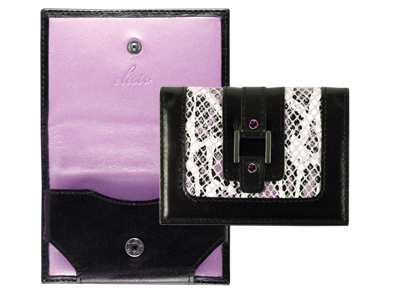Размеры: 100х65х10 мм. Футляр для собственных визиток Elisir, коллекция "Амбиция" с пряжкой и риветами Swarovski, из натуральной кожи. Внутри карман для визиток. Закрывается на кнопку.