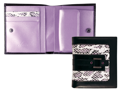Размеры: 95х105х25 мм. Портмоне женское малое Elisir, коллекция "Амбиция" с пряжкой и риветами Swarovski, из натуральной кожи. Закрывается на кнопку. Внутри 2 отделения для купюр, 4 открытых кармана, 3 кармана для кредитных карт, отделение для мелочи на кнопке.