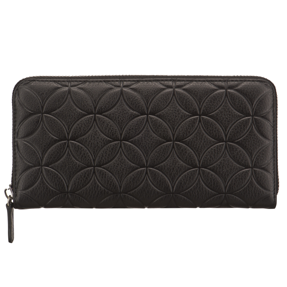 Размер: 9,5x19 см. Материал: MOSAIC LEATHER BLACK.Великолепное женское портмоне на круговой молнии. На внутренних стенках два прозрачных окошка: одно для прав, другое для банковской карты, которой вы пользуетесь чаще всего. Для карточек, банковских и клиентских, у этой модели более чем достаточно гнезд – 18. Для купюр 4 отделения, для монет – центральное отделение на молнии. За блоками для карточек расположены потайные карманы. Портмоне сконструировано гармошкой, открывается широко и удобно.